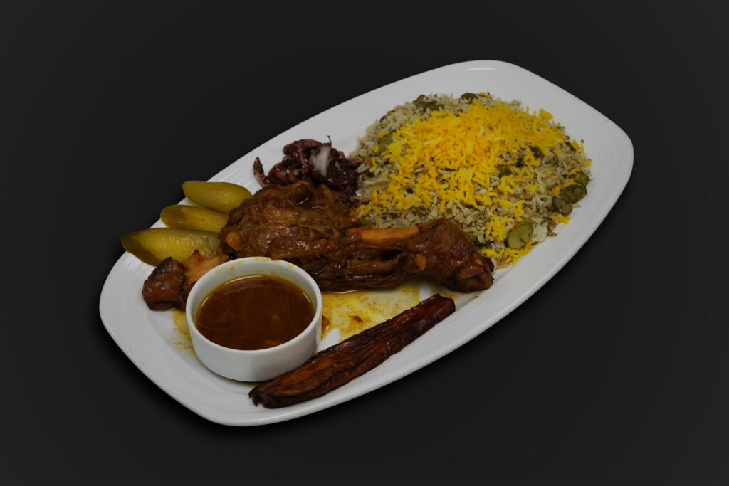 ماهیچه گوسفندی نرم و لذیذ،همراه با باقالی پلو با برنج ایرانی و روغن حیوانی